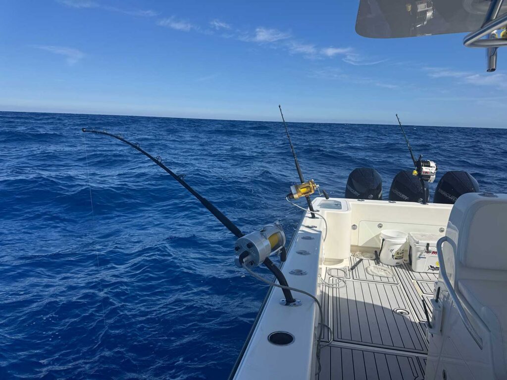 For the most part, during the day, swordfish are found on the bottom and it is critical to keep your bait as close to the bottom as you can. We can utilize either electric reels, manual reels, or our new Hooker Electric Penn 80W electric/manual combo.